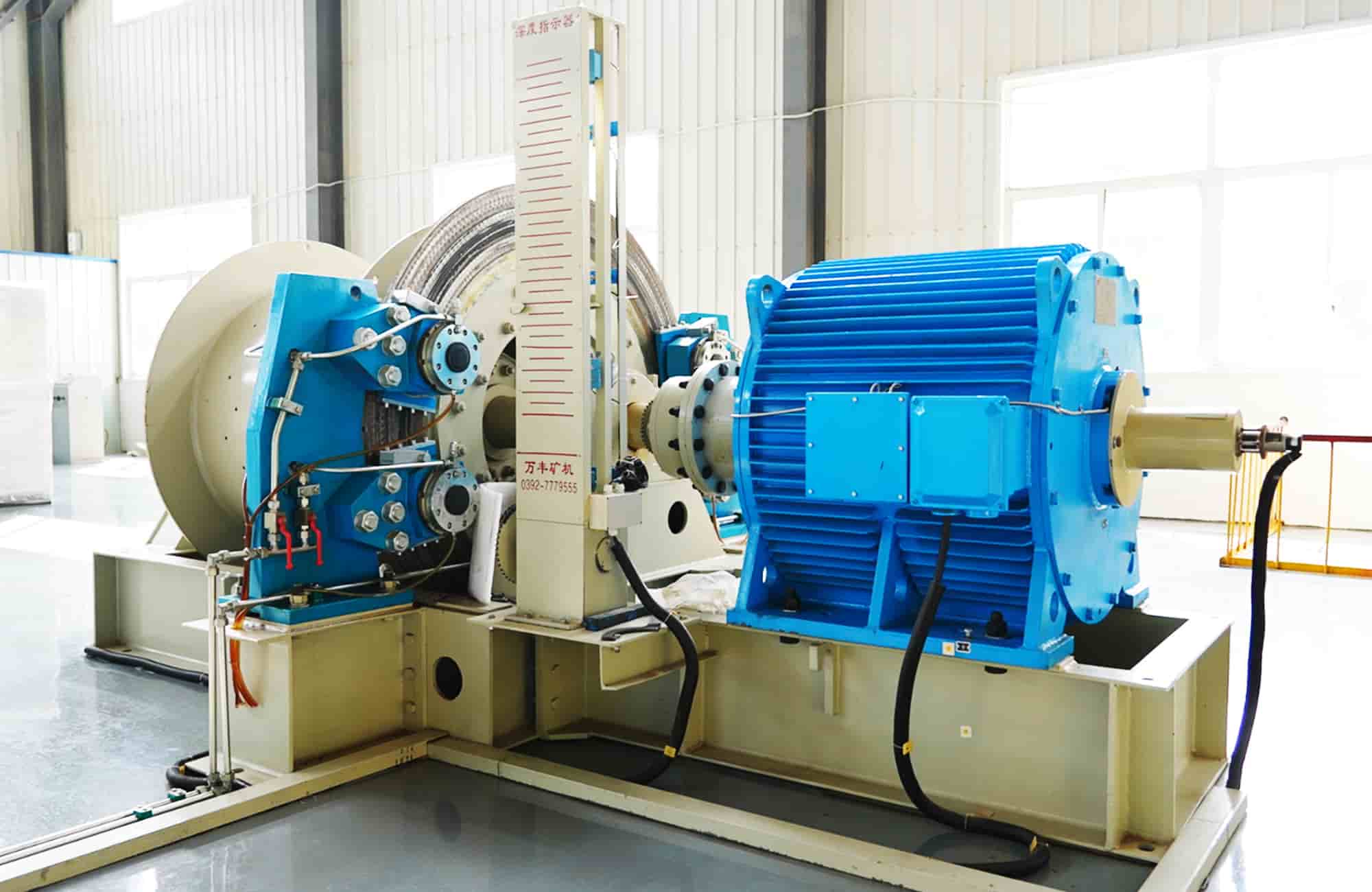 高效直驱:采用永磁同步电机直接驱动卷筒,传动效率高达96%以上,相比传统提升机(效率通常<85%)节能效果显著。