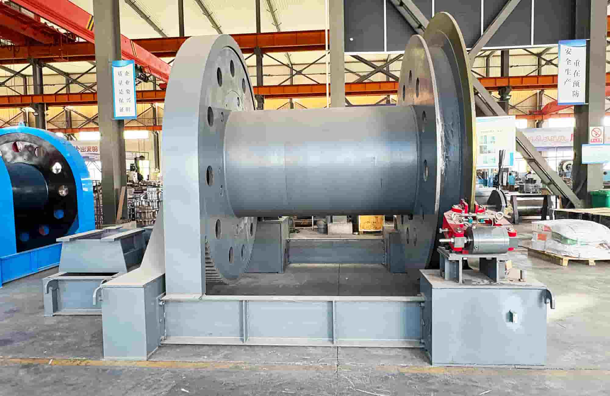 启动电机后,动力经弹性联轴器传递至减速器,减速后通过十字滑块联轴器驱动主轴装置运转。控制电机正反转,可实现卷筒缠绕或释放钢丝绳,动力经两级联轴器与减速器驱动主轴,控制电机正反转实现负载升降。核心配备液压盘刹系统,实现大扭矩、平稳的“定点刹车”,操作省力且易于自动化集成。
