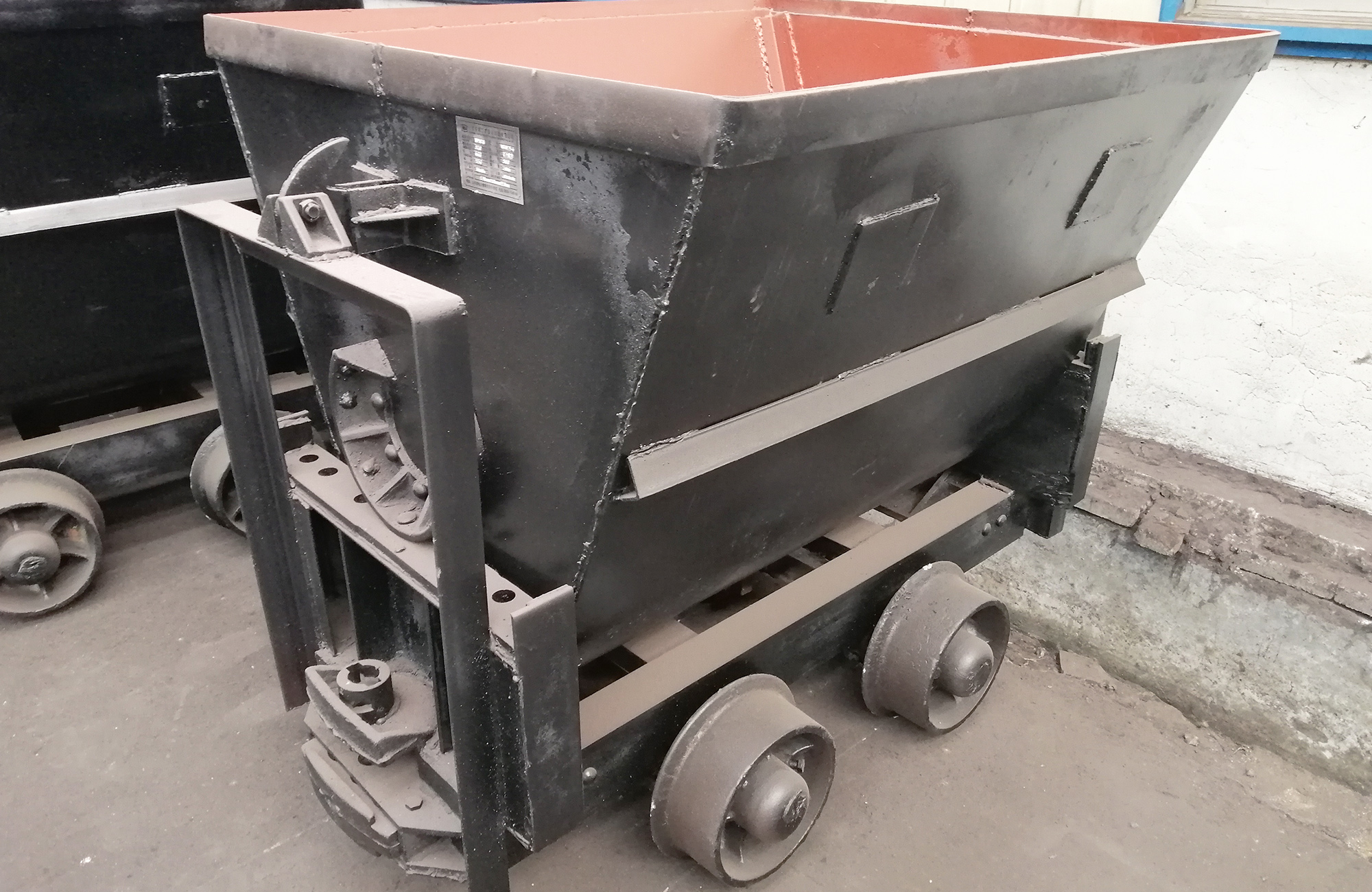 整车结构坚固,主要包含车厢、车架、缓冲碰头及轮轴。轮轴配备滚柱轴承,运行阻力小,支持人力推动,适用于多种工矿场景。